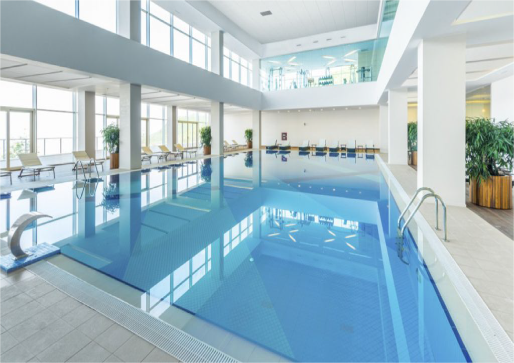 Sistem pemanas dan pengatur kelembapan ruangan diterapkan untuk memastikan suhu air dan suhu ruang tetap nyaman, ideal untuk olahraga atau rekreasi sepanjang tahun.Ventilasi dan Pencahayaan